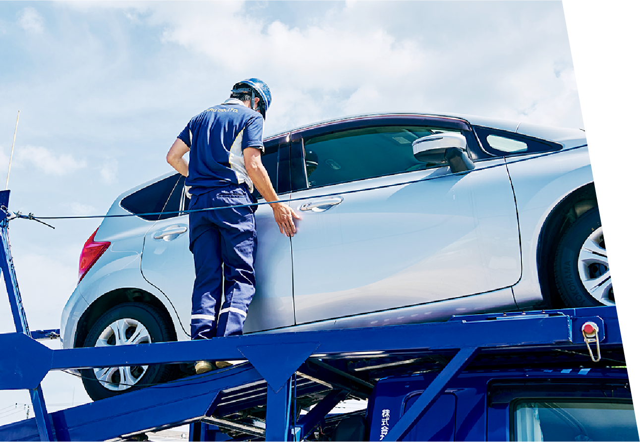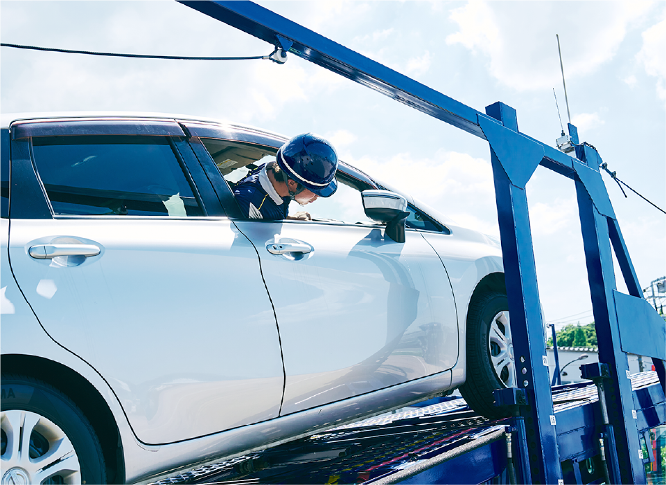 扱う中古車は、バッテリー上がりやガス欠で動かない車、車高の低いスポーツカーなど、種類も状態もさまざまです。そのため、車体の傷を細かく確認したり、年式や形状に応じて固定方法を工夫したりと、一台ごとに最適な対応が求められます。こうした繊細な技術を身につけるには経験が必要ですが、現場には高いスキルを持つ先輩が多く、サポートを受けながら着実にプロの技術を習得できる環境です。