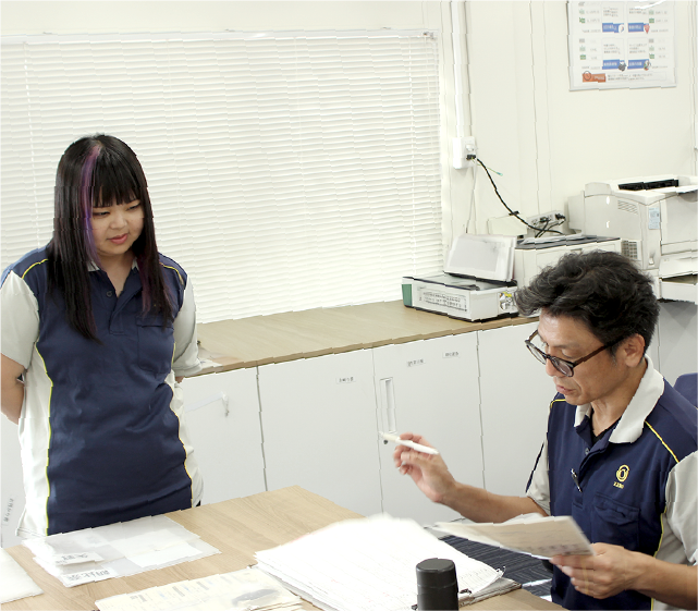 - 悪天候の中での輸送は大変です。前日のうちに天候を確認し、事前に積み込みを済ませたり、ルートを把握しておいたりと工夫をしています。また、チームで声をかけ合い、情報を共有しながら安全第一で取り組んでいます。たとえば、「このルートは木の枝が多いから気をつけて」など、細かな注意点を共有したり。こうした日々の準備とチームワークが、「安定した車両輸送」としてお客様から信頼につながっています。