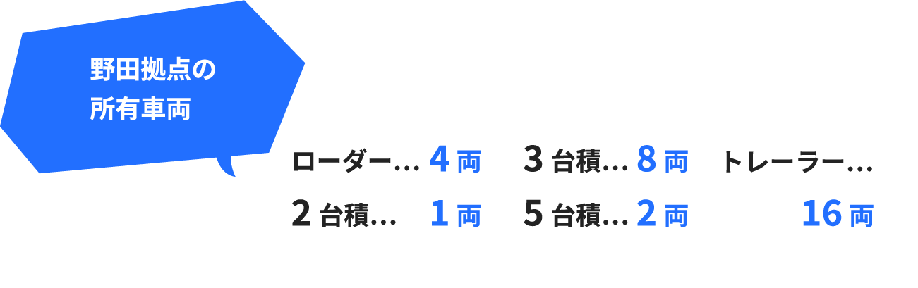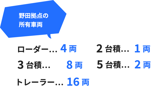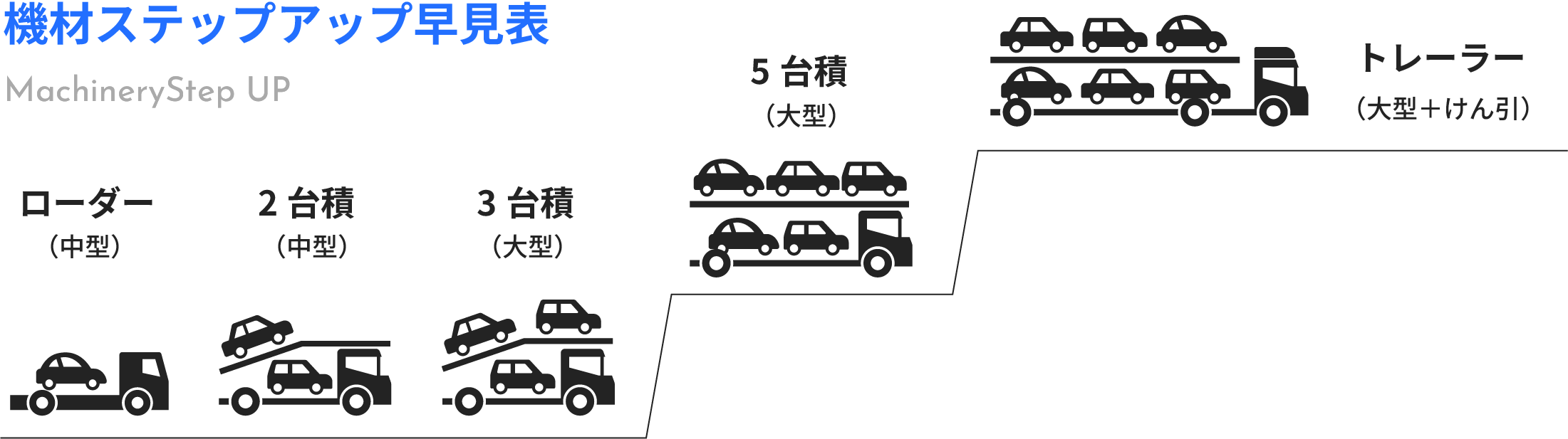 車を1台積めるローダー、2台積みは中型免許で運転可能。3台積みと5台積みは大型免許が必要になります。さらにけん引免許があればトレーラーを運転できるように。はじめはローダーで近場の輸送から経験を積み、徐々に台数を積める車両へとステップアップが可能です!必要な免許の取得も会社がしっかりバックアップ!任される仕事もどんどん広がり、成長を実感できます!